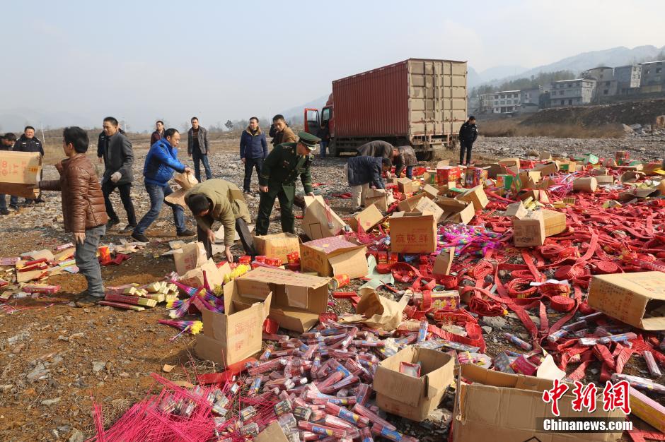 近日,重慶酉陽集中銷毀2097件假冒偽劣煙花爆竹產品,價值30多萬元。據介紹,這些產品由煙花爆竹專項檢查查獲,種類涵蓋各類鞭炮、擦炮、煙花和一些裝藥量較大的鞭炮,如不及時銷毀,一旦流入市場將對市民的生命財產安全構成重大威脅。因數量較大,集中點燃后,銷毀現場上方形成了高達幾十米的白色煙霧。