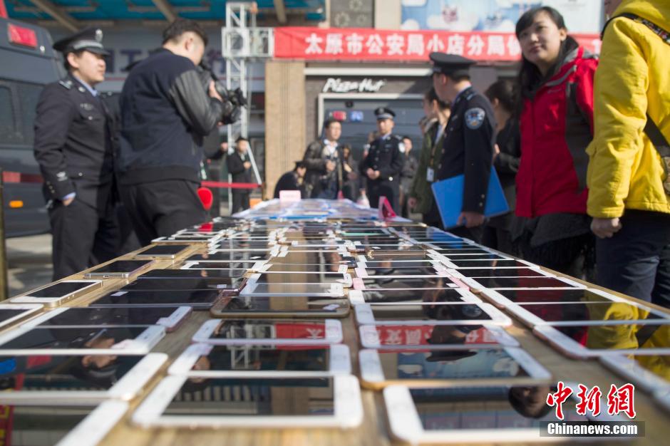 3月2日,山西太原警方發還民眾被盜手機。近日,太原市公安局偵破一個手機扒竊犯罪團伙,破獲案件200余起,追繳手機180余部。張云 攝