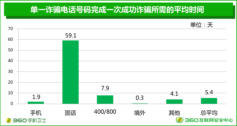 生活中,每個人都或多或少地接到過詐騙電話。從工作日到假期,從早到晚,犯罪分子們都在挖空心思編造各種騙局。很多人好奇詐騙分子每天這么“勤奮”,到底成功率有多高呢?10月27日,360發布的《2016詐騙電話活動規律與行為特征分析報告》對這一問題進行了深入的研究。《報告》顯示,平均約每5.4天,犯罪分子就能夠使用一個電話號碼完成一次成功或接近成功的詐騙。