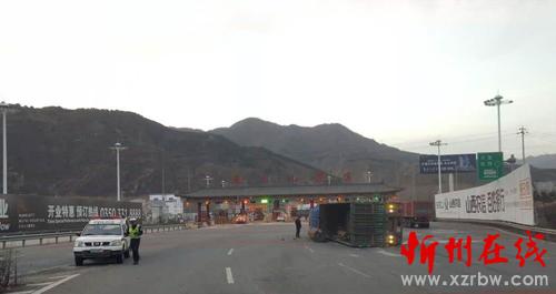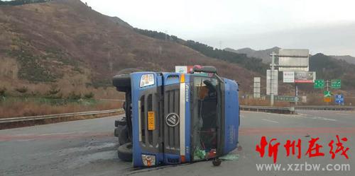 2016年11月19日17時00分許,山西交警高速二支隊九大隊民警翟躍、郭騏源接到報警稱:在五保高速12km(五臺山景區收費站內廣場)處,有一輛藍色歐曼牌重型半掛貨車因操作不當,將掛車內裝的鋼棒側滑,導致車輛側翻,造成車輛及路產不同程度損壞的道路交通事故。大隊民警第一時間趕赴現場,及時詢問當事人是否受傷,是否需要撥打“120”急救,并了解了當時的事發情況。當事人稱:“自己一個人開車回定襄,為省過路費,想著從五臺山景區高速口下,繞行低速回定襄,由于在下匝道時,打方向過急,車速較快,將車上所拉的鋼棒側滑,造成車輛的側翻,所幸人沒有受傷。”之后,民警對現場進行勘查,并調取監控視頻,發現車輛在轉彎時,車速較快,駕駛員操作不當是造成事故發生的原因。