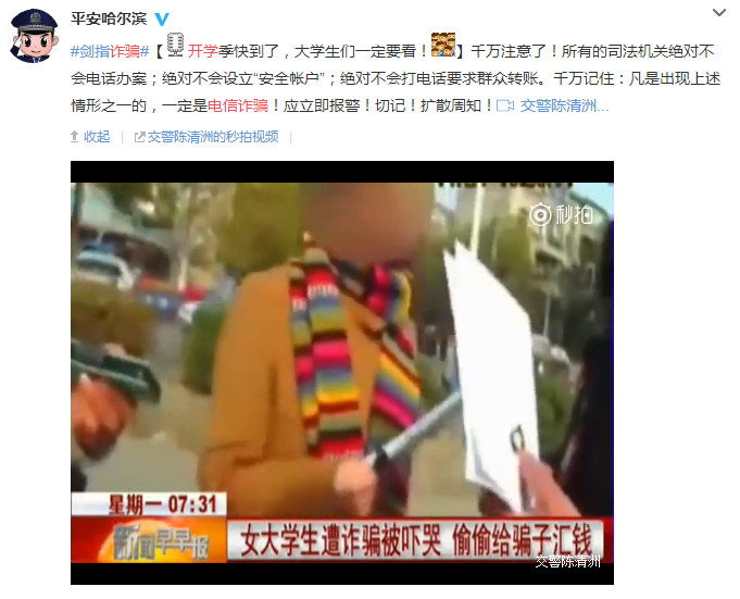 近日,一則新聞視頻在社交網絡上廣為流傳,一名女大學生聽信了冒充刑警的詐騙犯,前往銀行匯款,幸好被銀行工作人員及時發現并制止。視頻中,直到女孩的家長和真正的警察出現,女孩仍然對騙子的話深信不疑,騙子忽悠功力可見一斑。