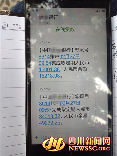 2月27日上午10時左右,羅大媽來到瀘州大山坪某銀行取定期存款。“這張卡是工資卡,經常支取,究竟活期有多少余額,我也不清楚,但應該不多。”羅大媽告訴四川新聞網記者,自己有兩張定期存折,一張是1.5萬的,另一張是9萬。