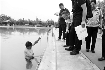 為了了解事發現場的具體情況,昨天,本案承辦法官前往事發地,對本案進行現場勘驗。根據現場情況,梅女士溺水的事發地位于一處露天泳池。經勘驗,泳池約為長方形,南北分為兒童區和成人區。成人區水深1.3米,水池為平底,東西長約45米,南北長約30米。泳池四周各有一個救生觀察臺。梅女士出事地點位于泳池成人區的東南角,經工作人員在水中實地測量,水深1.3米,最近的救生觀察臺距出事地點約為10米。