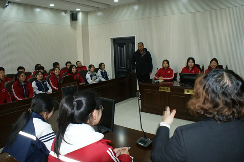 在干警的指導下,同學們模擬庭審現場,從審判長、審判員到公訴人、辯護人、被告人等,大家紛紛扮演起了不同的角色。