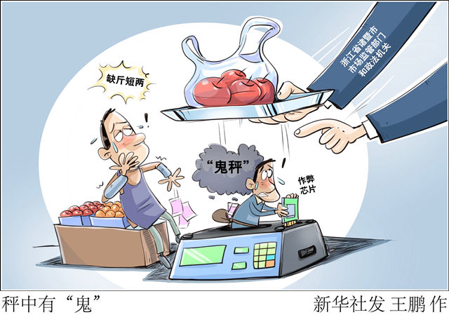 一臺小小的“鬼秤”,不僅侵害群眾合法權益,更有損公平誠信的市場環境。執法部門要主動作為,為公序良俗撐腰,讓群眾利益得到保障;另一方面,遭遇缺斤短兩問題,消費者也不要忍氣吞聲,多和不法現象“較真”:買完菜上“安心秤”復稱一下,對不法行為堅決舉報。大家合力,一起讓“鬼秤”無處遁形。