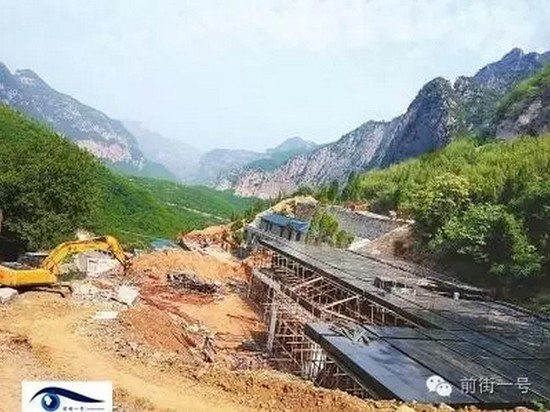 近日,據河南鞏義市大峪溝鎮民權村村民舉報稱,從2015年夏天開始,該村所處青龍山慈云寺景區內的水庫旁有人在砍伐林木,林木砍伐后,旁邊的十幾畝可耕地也被侵占,被建造成別墅和農莊。