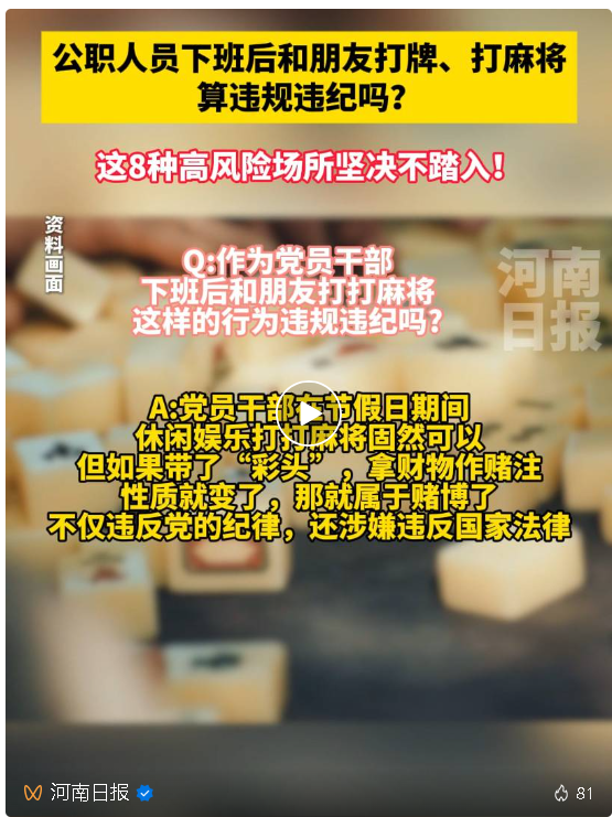 公職人員下班后和朋友打牌、打麻將,違規違紀嗎?
