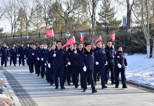 活動現場,支隊主要領導親自帶隊,以身作則引領全體隊員闊步前行。迎著清晨的朝陽,民輔警們身著統一服裝,邁著矯健的步伐,精神抖擻、意氣風發。大家相互鼓勁、不甘落后,腳步聲、笑語聲交織在一起,匯成一道充滿活力的風景線,充分展現了隊伍昂揚向上、團結奮進的精神風貌。