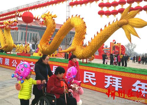 2月15日,河曲縣臨隩公園內張燈結彩,歡樂祥和,一位行走不便的老人坐著輪椅在家人的陪護下游園觀燈?!皟晒潯逼陂g,這里由晉神能源、山西同德化工等九家駐河曲大企業制作的”展望十三五,全面建小康“企業形象宣傳燈展,吸引了觀眾眼球,各式彩燈造型新穎,栩栩如生,為節日增添了濃厚的喜慶氛圍。(鄔耿杰 攝)