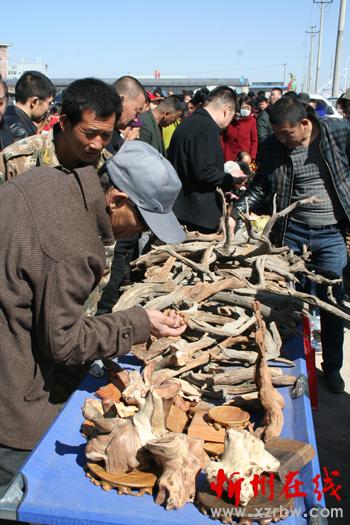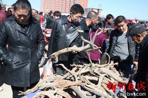 3月13日,原平市集貿市場上農民正在賣形態各異廢棄的柏樹木根枝 他們變廢為寶促增收,很受市民喜愛收買。該市,采取多措并舉積極引導農民增收致富,加快奔小康步伐。(趙月仁 攝)