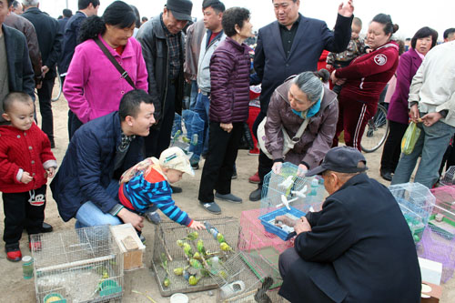 3月20日。春風送暖,原平市十里八鄉的農民趕大集鬧市場,春季農貿市場上紅紅火火十分熱鬧,鮮花爭奇斗艷、小鳥聲聲啼鳴活蹦亂跳、魚兒躍,備受人們的喜愛,市民們紛紛選花,挑鳥,買魚享受著春天的氣息和歡樂,陶冶情操同時也增加了農民收入。(趙春曉 攝)