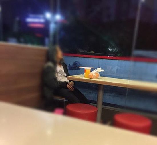 5月8日凌晨兩點半,外面下著大雨,一網友在重慶某快餐店里,看到一個拾荒老婆婆睡著了,之后陸續有三個男生過來在老婆婆身前的桌上放了漢堡、橙汁、橘子、薯條等食物。這名網友將他所見之事發至微博,這條微博獲得了眾多網友的轉發,人們紛紛為此暖心之舉點贊。