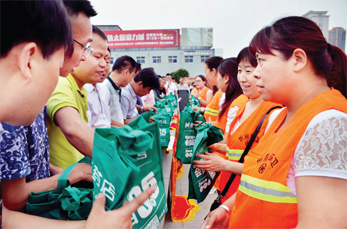 本報訊 6 月26 日下午,忻州市吉達惠康藥業攜手仁和中方藥業、廣州白云制藥、太極集團、東方慧醫等單位,在城區體育廣場舉行了“夏日送清涼,關愛環衛者”活動,為每位環衛工人準備了2 盒阿莫西林、1 包防暑茶、1 盒藿香正氣口服液、1 支護手霜、防1 個霧霾口罩等防暑品,共1000 余份,價值6 萬余元。