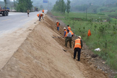 進入汛期以來,靜樂公路管理段將路基邊坡加固作為安全隱患治理,保障公路安全暢通的重要養護工作來抓,堅持不懈的做好強基固路工作。確保了預防性、預警性、安全性養護三到位,圖為養路工正在培土加固邊坡。(李永珍 攝)
