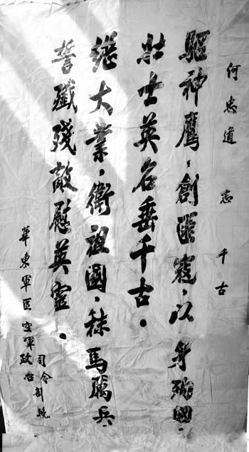 1952年底,毛澤東主席為何忠道的兄長何佩道簽發了“革命犧牲軍人家屬光榮紀念證”,上刻印“永垂不朽”大字;空軍政治部給何佩道寄來了“革命軍人犧牲證明書”及家屬節哀安撫信;空軍司令部給河曲縣人民政府發去了嘉獎慰問信函。