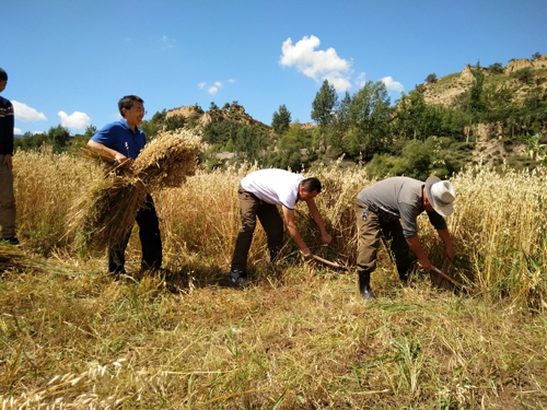 秋高氣爽,碩果累累。進入農忙時節,寧武縣的第一書記們,自發地深入到田間地頭,和農民一起勞作,享受收獲的喜悅。圖為第一書記們正在幫農民收割莜麥