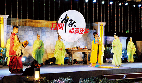 ——“月圓中秋·情滿泛華”忻州中秋賞月會側記 魯明強 王菲 許凈/文 劉紀森 馮曉磊 宮清華/圖 漢式拜月展現傳統文化 悠揚的笙笛合奏中,身著古裝長袍漢服的主祭官手捧竹簡出場,抑揚頓挫宣布傳統拜月祈福儀式開始。八位嫵媚動人、服飾艷麗的少女翩翩起舞,宛如仙女下凡。向月神獻舞后,端莊的少女端著各種水果、月餅擺放在祭臺香案之上,隨著主祭官吟唱般的指令“敬花”、“敬香”、“敬酒”,祭祀執事官在凈手之后依次虔誠地完成著禮儀。隨后主祭官聲情并茂地誦讀起《中秋祭月文》:“丙申仲秋,夜風拂涼。太陰之靈,皓皓當空。乘風而出,中天乃赫……”