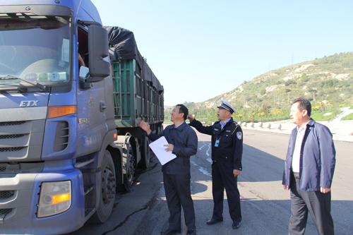 9月21日,神池縣政府分管領導、治超辦及交警大隊相關工作人員到崞水公路神池澗口段向過往貨車司機發放“公路運輸車輛超限超載認定標準”等治超工作相關宣傳材料。當日我省全面啟動對貨車非法改裝、違法超限超載和車輛運輸車違法運輸行為三個專項治理行動。(詹俊杰 攝)