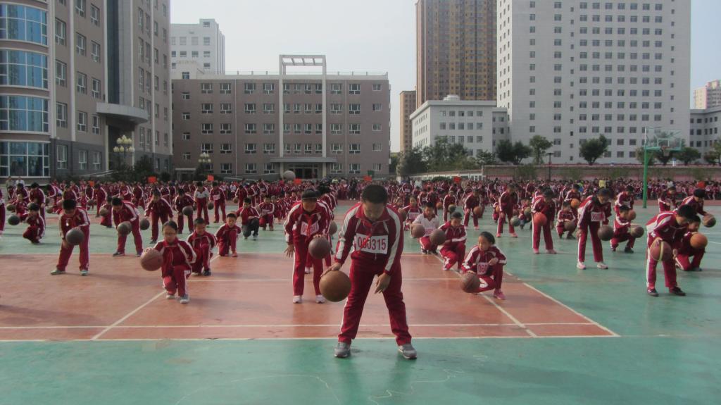 在歡快的旋律中,由100人組成的籃球操隊伍在吶喊聲中跑進會場。同學們邁著矯健的步伐,伴著動感十足的音樂,開始了精彩的籃球操表演。同學們熟練地玩轉籃球,一招一式新穎別致吸人眼球。運動與音樂交融,將活力與激情揮灑得淋漓盡致,得到了全體師生的陣陣喝彩和歡呼。充分展現了全校師生意氣風發、積極向上、朝氣蓬勃的精神風貌,成為開幕式中一道亮麗的風景線。