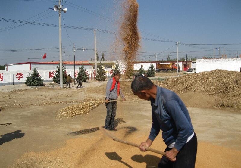 “糜米撈飯豆腐菜,皇帝老爺也喜愛。”連日來,河曲縣山區農民抓緊收割做“糜米撈飯”的糜子,在村頭場面上“熬晌”碾場、揚場,到處彌散著糜米的芳香。當一堆堆金燦燦的糜米呈現在場面,老鄉們醉了樂了。圖為柏鹿泉村農民打場的情景。(賈金理)