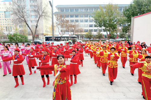 “我們舉辦這次活動就是為了緬懷革命先烈、弘揚長征精神。同時也讓更多的老年人能夠積極參加文化娛樂活動,在鍛煉身體的同時也擁有一個愉快的心情。”76歲的精品鑼鼓隊負責人梁月娥對記者說。圖為活動現場(王菲 攝影報道)