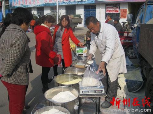 11月17日,河曲縣農民劉書恒在巡鎮集市加工銷售雜糧面。劉書恒創辦全縣首個雜糧流動加工“廠”,走村串鄉收購雜糧,并現場加工莜面、豆面、蕎面、糕面、高粱面、玉米面等。此舉方便了農民賣糧,提供了放心面,拓寬了增收門路,樹立了創新創業的榜樣。(賈金理 攝)