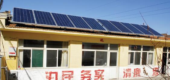五寨縣大力發展光伏發電扶貧,利用村民屋頂安裝太陽能發電設備,發下的電并入電網,賣電收入給百姓分紅,雖然投資不大收入不算高,但成為百姓致富的一項門路。圖為經堂寺鄉村民屋頂的光伏發電設備。(楊峻峰 攝)