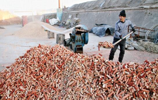 12月14日,原平市文殊莊村菇農正在將玉米芯粉碎裝菌袋。該市積極引導農民利用玉米芯、鋸末、麩皮等廢料為基料,發展食用菌種植,并通過成立食用菌種植專業合作社、引進龍頭企業進行規模化、產業化經營,使當地農民走上發展食用菌種植的致富路。(褚震 攝)