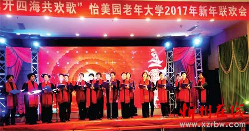 2016年12月29日,怡美園老年大學舉辦了“花開四海共歡歌”迎新年晚會,怡美園老年大學的200多名學員與城區的文藝愛好者同臺共演了豐富多彩的喜慶節目,演員多數是中老年人。晚會上展演了聲樂、器樂、歌舞、健身操等40多個節目,臺上精彩的演出,贏得了觀眾的陣陣掌聲。(韓麗萍 攝)