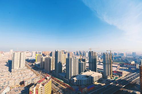 1月9日,太原市空氣AQI指數81,市民迎來了一個干凈透亮的二級天。圖為蔚藍天空下省城南內環西街附近景色。