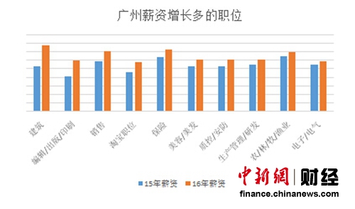 廣州薪資增長較多的職位 數據來源:國內某知名招聘網站