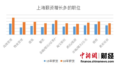 上海薪資增長較多的職位 數據來源:國內某知名招聘網站