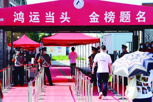 在北京市人大附中通州校區高考考點,考生正步入考場。 中國婦女報·中國婦女網記者 楊睿/攝