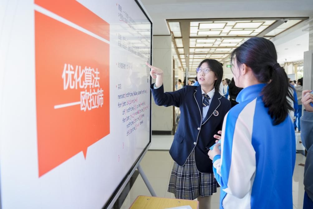 “數模筑夢”板塊中,學生們展示了在數學建模方面的成果,在日常的生活和學習中,大模型工具提升了學生用數學的眼光看世界的能力,學生也不斷通過建模豐富著大模型的功能。