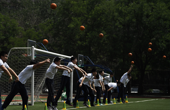 5月28日,北京,第十八中學學生備考中考體育考試。視覺中國供圖