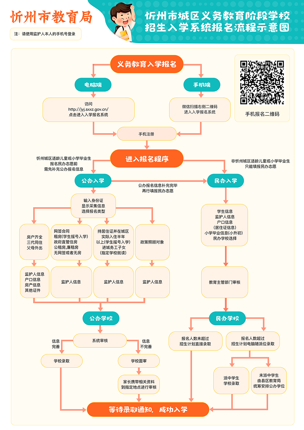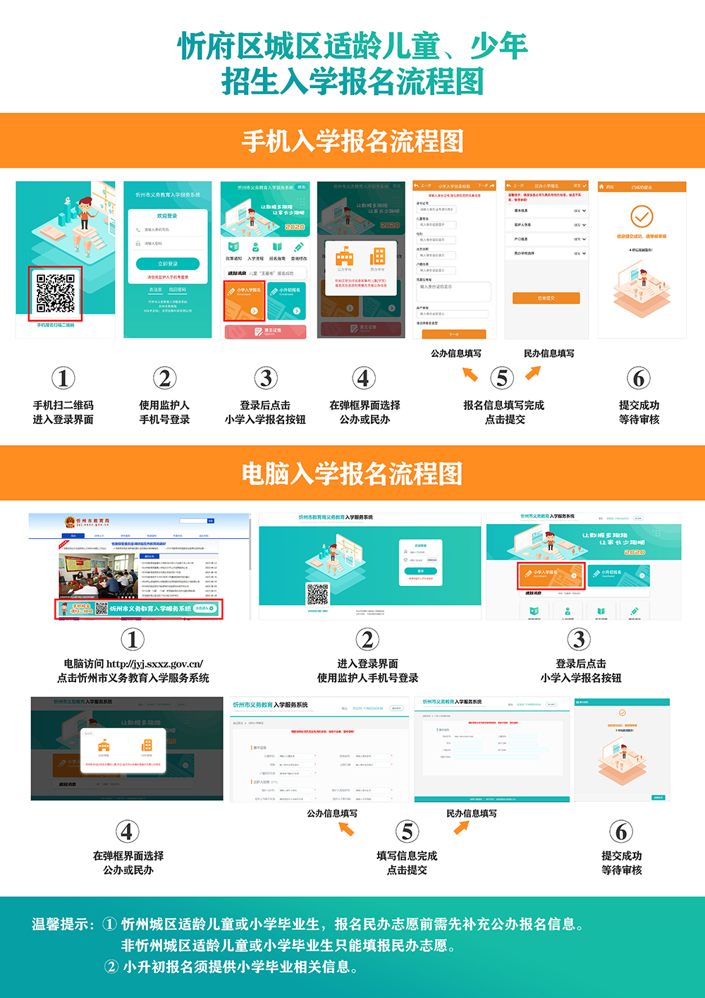 忻州市城區義務教育階段學校招生入學系統報名流程示意圖