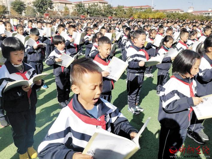 啟動儀式現場,忻州現代雙語學校小學部負責人介紹說,學校開展書香節活動,其目的就是為學生成長創造一個理想的文化生態環境,推進書香校園建設,營造積極向上、清新高雅、健康文明的校園文化氛圍,讓書籍為同學們打開一扇扇窗,開啟一道道門,豐富知識,開闊視野,活躍思維,陶冶情操,真正使他們享受閱讀、學習、生活的快樂,從而為培養會生存、會做人、會學習、具有現代文明素養的小公民打下堅實的基礎。圖為活動現場 (張志遠 張尚鈺)
