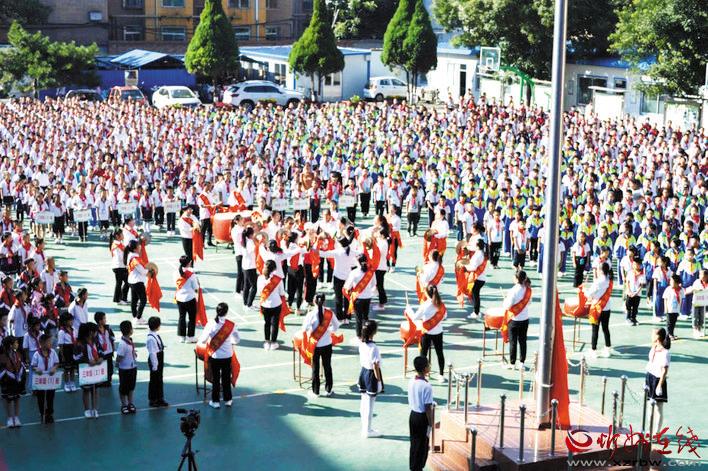 “老師,您辛苦了!”活動現場,少先隊員為前來上課的老師們以及馬路邊維持交通秩序的交警叔叔、護學崗志愿者鞠躬敬禮并戴上鮮艷的紅領巾,表達了同學們對老師、對長輩最誠摯的敬意。“謝謝孩子們,這是我們應該做的。祝同學們健康成長!”老師、叔叔阿姨回以鼓勵的話語。大會對學校師德標兵、模范教師、優秀班主任、先進工作者進行了表彰。