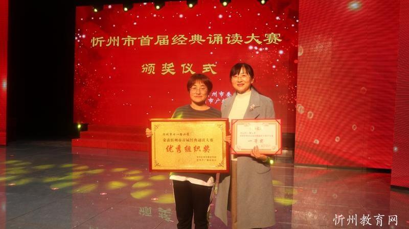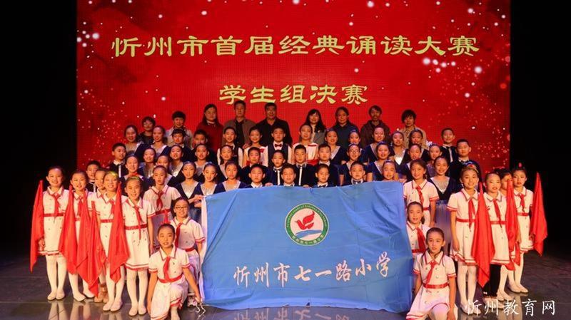 “共讀中華經典,聆聽古詩書韻”。由中共忻州市委宣傳部主辦,忻州市廣播電視臺承辦 “忻州市首屆經典誦讀大賽”經過初賽海選和緊張激烈的復賽和決賽,于11月1日落下帷幕。本次比賽學生組共有四十一個參賽節目,經過角逐,有十個節目進入了決賽。決賽采取評委當場亮分,現場點評的方式,最終評出一等獎一名,二等獎二名,三等獎三名,最佳風采獎四名。七一路小學以98.51分的成績奪冠,榮獲學生組一等獎。同時學校也榮獲優秀組織獎。