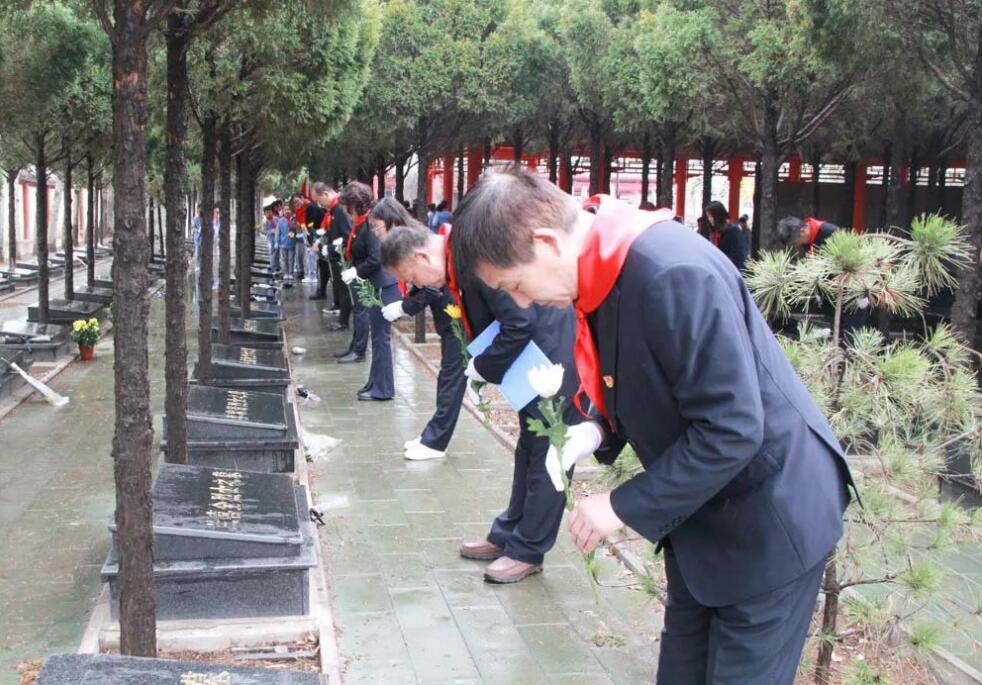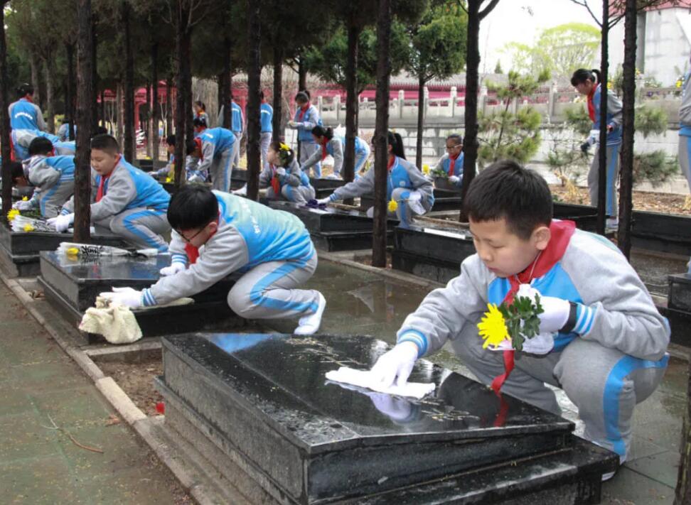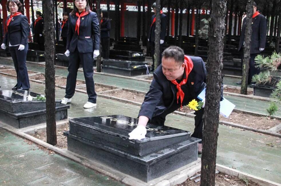 在祭奠活動(dòng)中,同學(xué)們跟隨盧俊芬老師一道學(xué)習(xí)了趙正午烈士的革命故事,為烈士陵園的先烈們敬獻(xiàn)花籃、默哀,并細(xì)致的擦拭了每座烈士墓碑,以此表達(dá)對先烈們的無限哀思。