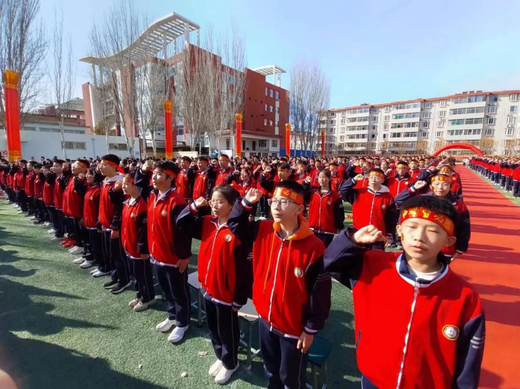 趙俊瑞校長表示,在去年學(xué)校中考取得了優(yōu)秀的成績,號召全體師生發(fā)揚(yáng)釘子精神,奮斗一百天,決勝一百天,勉勵在場同學(xué)們堅(jiān)定決心,不畏艱難,堅(jiān)持到底,激勵全體師生團(tuán)結(jié)一致,開拓創(chuàng)新,努力奮斗,以科學(xué)的方法和良好的心態(tài)決勝中考戰(zhàn)場。“龍行龘龘啟新程,前程朤朤向未來”,攻堅(jiān)克難,千錘百煉。風(fēng)雨兼程,無畏前行,在高質(zhì)量發(fā)展的道路上奮勇前進(jìn)。
