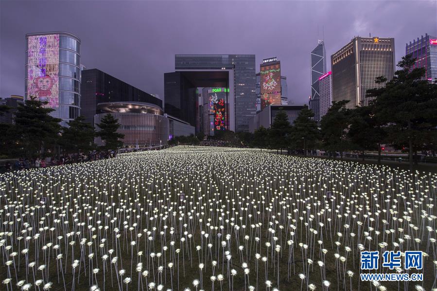 這是在中環(huán)海濱拍攝的白玫瑰花燈(2月13日攝)。 2月13日,來自韓國首爾的LED Rose Garden大型公共展覽亮相香港。25000朵LED白玫瑰花燈在中環(huán)海濱展出,在情人節(jié)即將到來之際點(diǎn)亮維港,營造出浪漫甜蜜的氛圍。新華社記者 呂小煒 攝