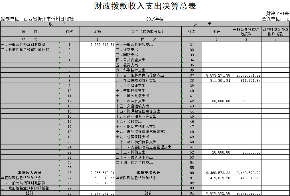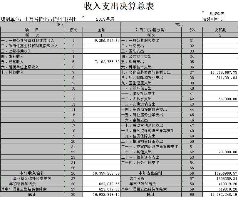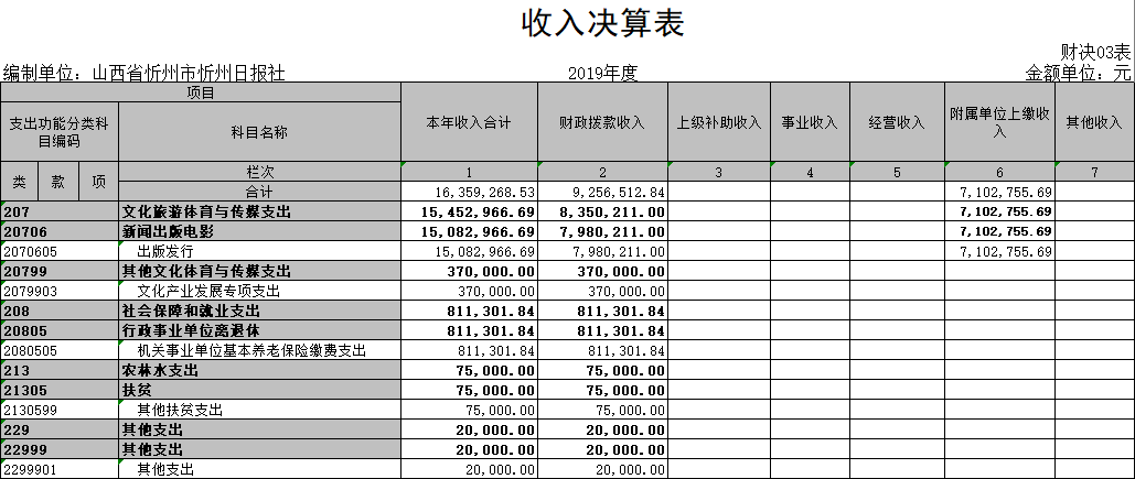 (三)部門決算單位構成:忻州日報社是一級預算單位,無下屬單位。部門預算只有一個單位,即忻州日報社。