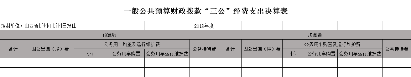 (四)“三公經費”開支情況。 忻州日報社是全額事業單位,財政只撥付人員經費。我單位從財政撥款中沒有支出“三公經費”,“三公經費”數字為0,故有關“三公經費”的內容均為0。一般公共預算“三公”經費支出表、“三公”經費增減變化原因及因公出國、公務用車及公務接待等項均無數字。也沒有因公出國(境)團組數及人數,“公務用車購置和運行費”為0。公務用車購置數為0,保有量為6輛,本年國內公務接待的批次、人數為0。