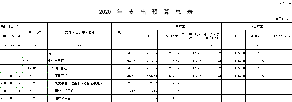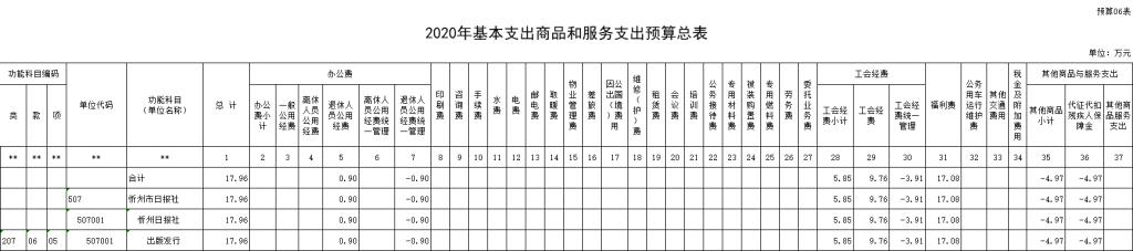 三、忻州日報社2020年部門預算收支情況說明