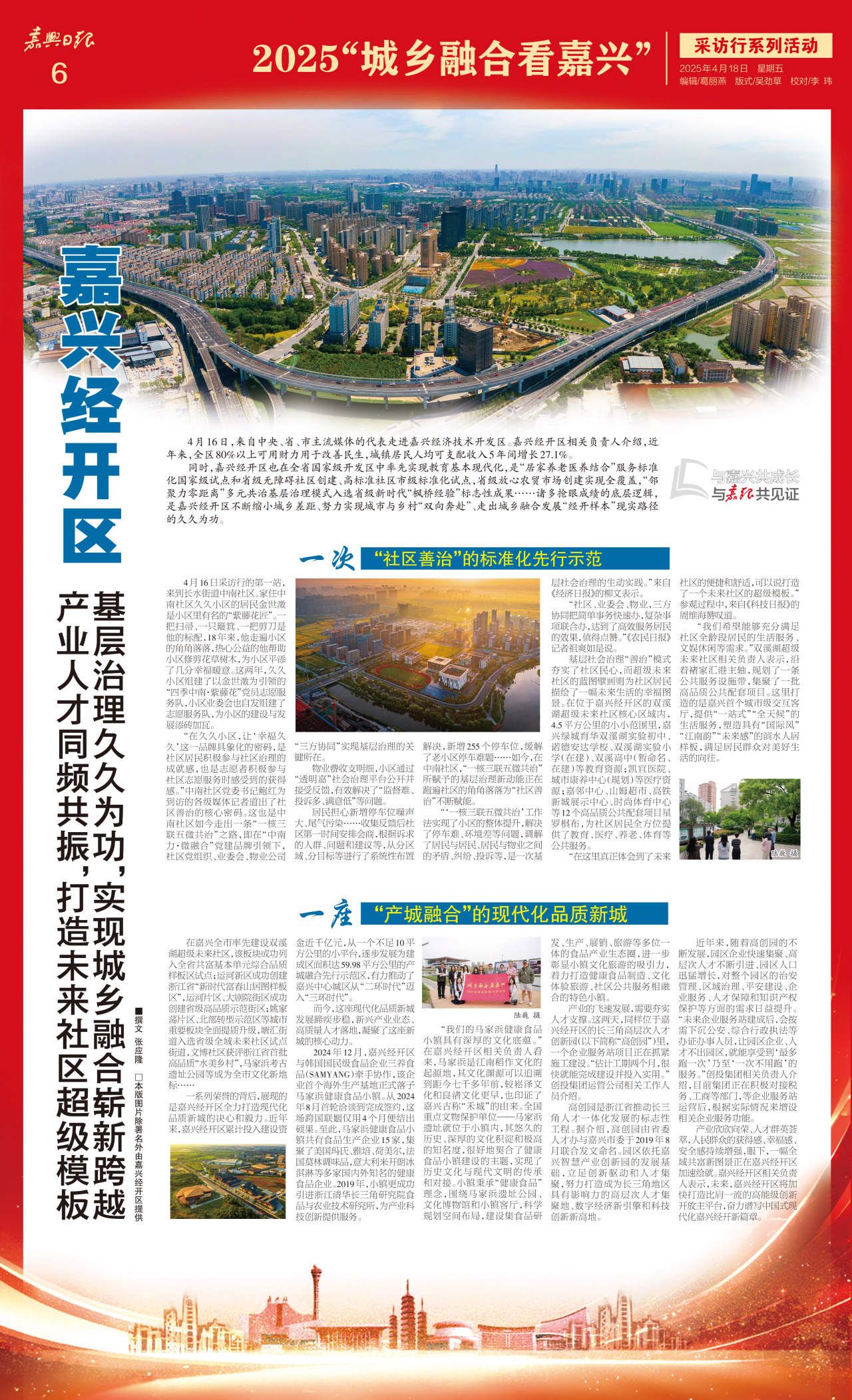 同時,嘉興經開區也在全省國家級開發區中率先實現教育基本現代化,是“居家養老醫養結合”服務標準化國家級試點和省級無障礙社區創建、高標準社區市級標準化試點,省級放心農貿市場創建實現全覆蓋,“鄰聚力零距離”多元共治基層治理模式入選省級新時代“楓橋經驗”標志性成果……諸多搶眼成績的底層邏輯,是嘉興經開區不斷縮小城鄉差距、努力實現城市與鄉村“雙向奔赴”、走出城鄉融合發展“經開樣本”現實路徑的久久為功。