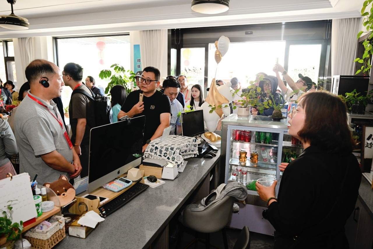 村里蕓溪民宿的“潮趣”營地,讓記者們見識到了“潮鄉”傳統之外時尚、新銳一面。民宿主理人是80后返鄉青年宋曉燕,在“家門口”實現了開民宿的夢想。“蕓溪”背靠浙北最美公路翁金線、面朝錢塘江,如今,有了這“潮趣”營地,就能讓客人們想安靜時要一間房、泡一壺茶;愛熱鬧的,呼朋喚友一起燒烤、露營,共赴“江岸野趣”;或是帶著小朋友來摘野菜、喂小動物,與大自然來一次親密接觸……宋曉燕將“蕓溪”經營成了具有鄉村煙火氣、人情味的驛站,讓南來北往的客人們在這里找到了“回家”的感覺。已是“銀宿”級別的“蕓溪”,因為極好的口碑,目前客房訂單已排到“五一”假期。
