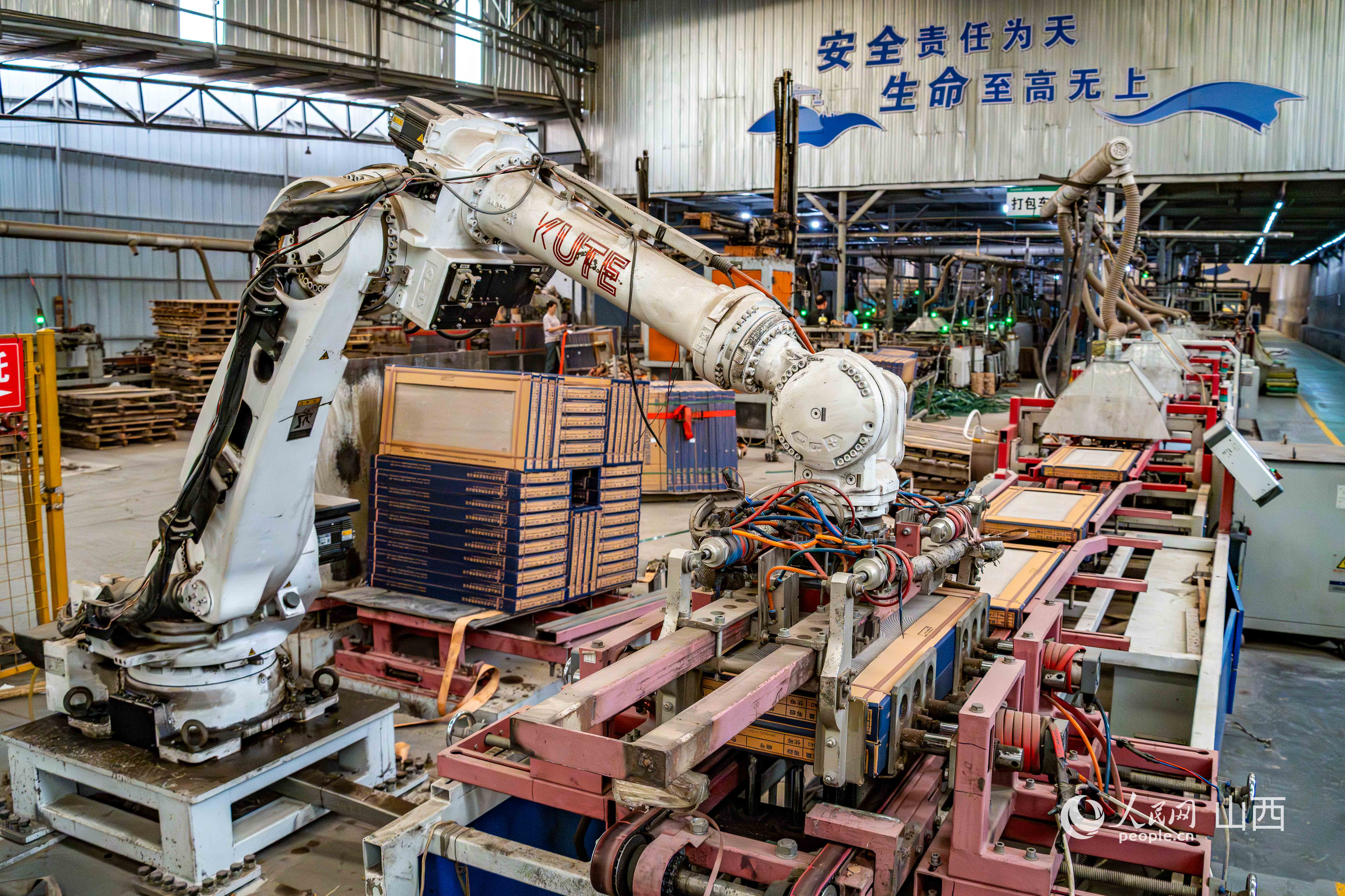 華冠陶瓷有限公司的生產(chǎn)車間,機(jī)械臂正在打包裝箱。人民網(wǎng) 馬夢迪攝