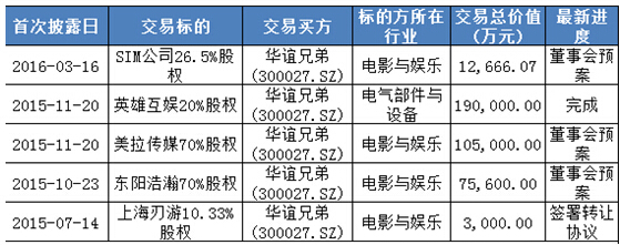 在財報報表中,東陽浩瀚2015年凈利潤5111.82萬元、東陽美拉2015年凈利潤4602.67萬元。華誼兄弟的收購之路還遠遠沒有停止,就在3月28日,華誼兄弟在表示,公司投資了暴風魔鏡、圣威特等VR公司。華誼兄弟這樣不計成本的收購行為像是一場賭博,如此“大方”的手筆,讓不少投資者心存質疑。
