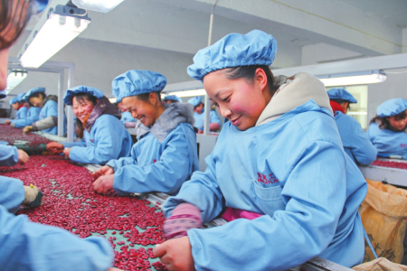 岢嵐有野生沙棘49萬畝。宋家溝功能食品有限公司是一家從事沙棘全產(chǎn)業(yè)鏈精深加工的開發(fā)企業(yè)。“市場(chǎng)上沙棘汁常見,但沙棘茶不多見。”總經(jīng)理張艷峰介紹,其實(shí)早在1977年沙棘就入了藥典,藥用價(jià)值、食用價(jià)值非常高。現(xiàn)在人們對(duì)健康養(yǎng)生非常重視,為此,公司組織科研力量進(jìn)行攻關(guān),成功開發(fā)出沙棘茶,廣受市場(chǎng)歡迎。“我們以每斤2元的價(jià)格從村民手里收購(gòu)沙棘鮮葉,村民只要上趟山采摘,回來就能變成錢。”